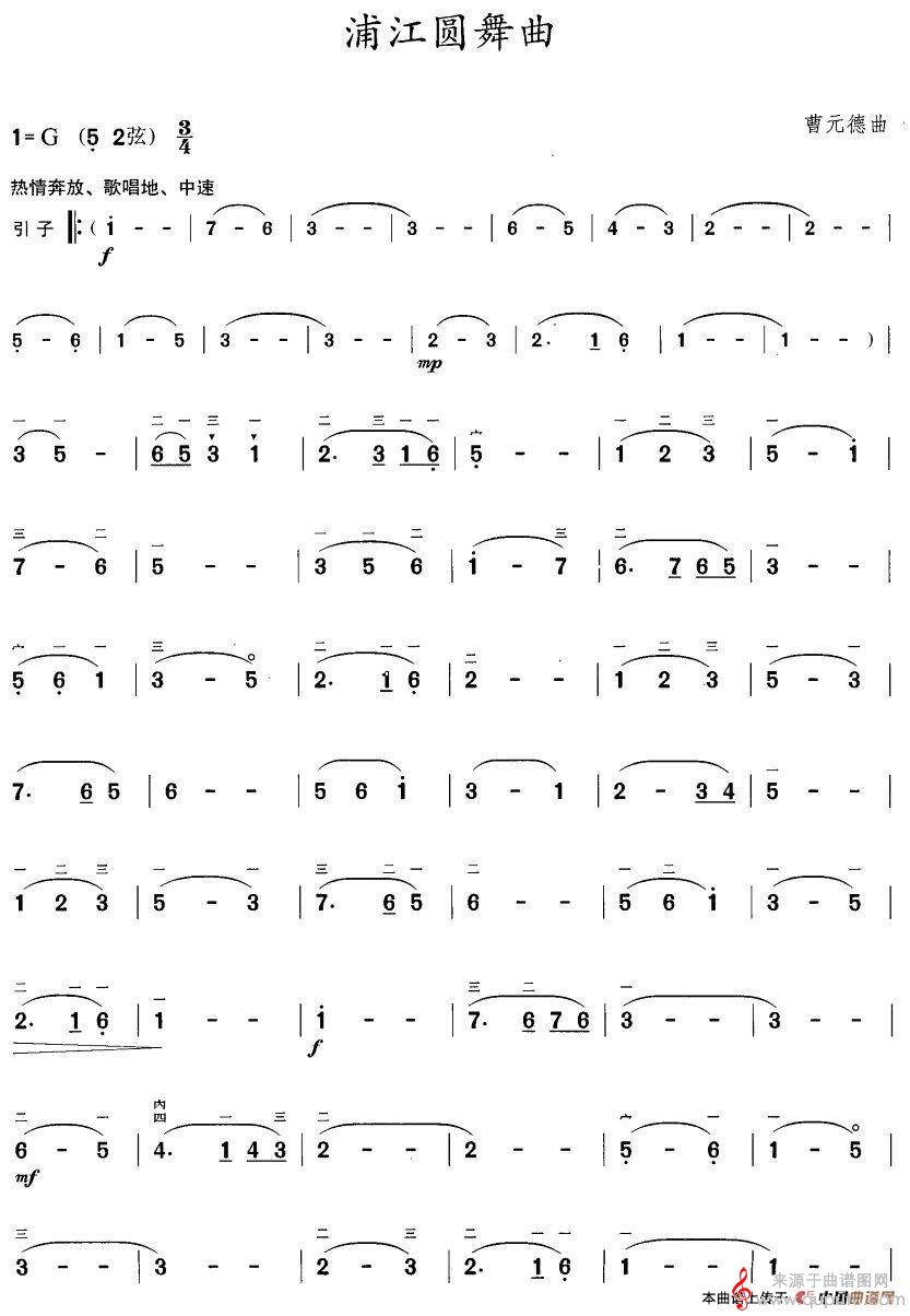 曲谱图网为您提供浦江圆舞曲简谱(二胡谱曲谱)找谱子,就上曲谱图网。
