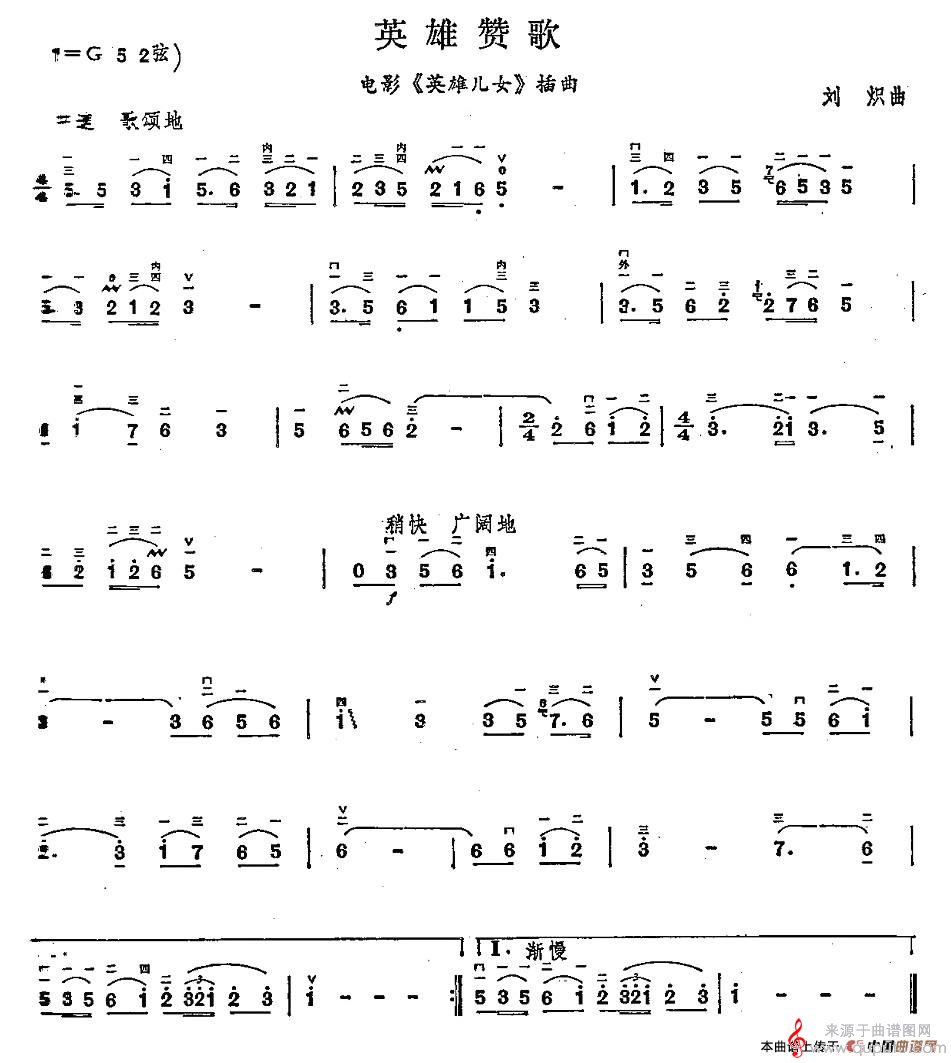 英雄赞歌曲谱(电影《英雄儿女》插曲)