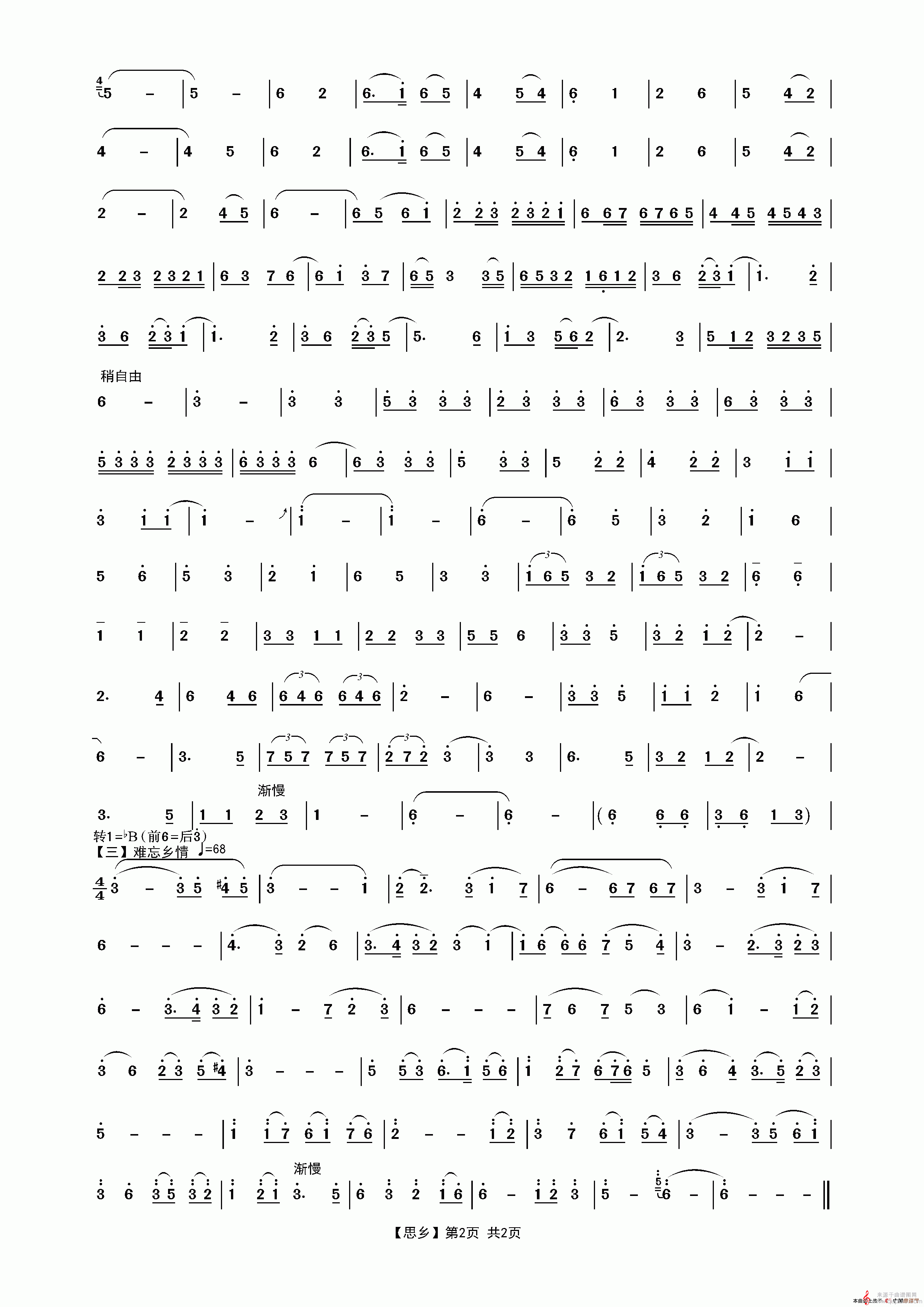 思乡简谱(二胡独奏曲思乡李孝常记谱)
