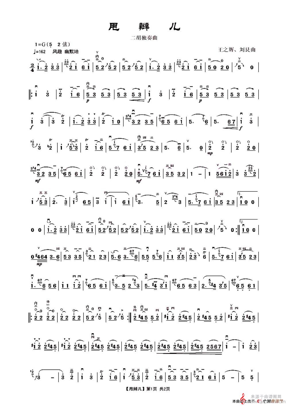 曲谱图网为您提供甩辫儿(甩辫儿二胡简谱曲谱)找谱子,就上曲谱图网。