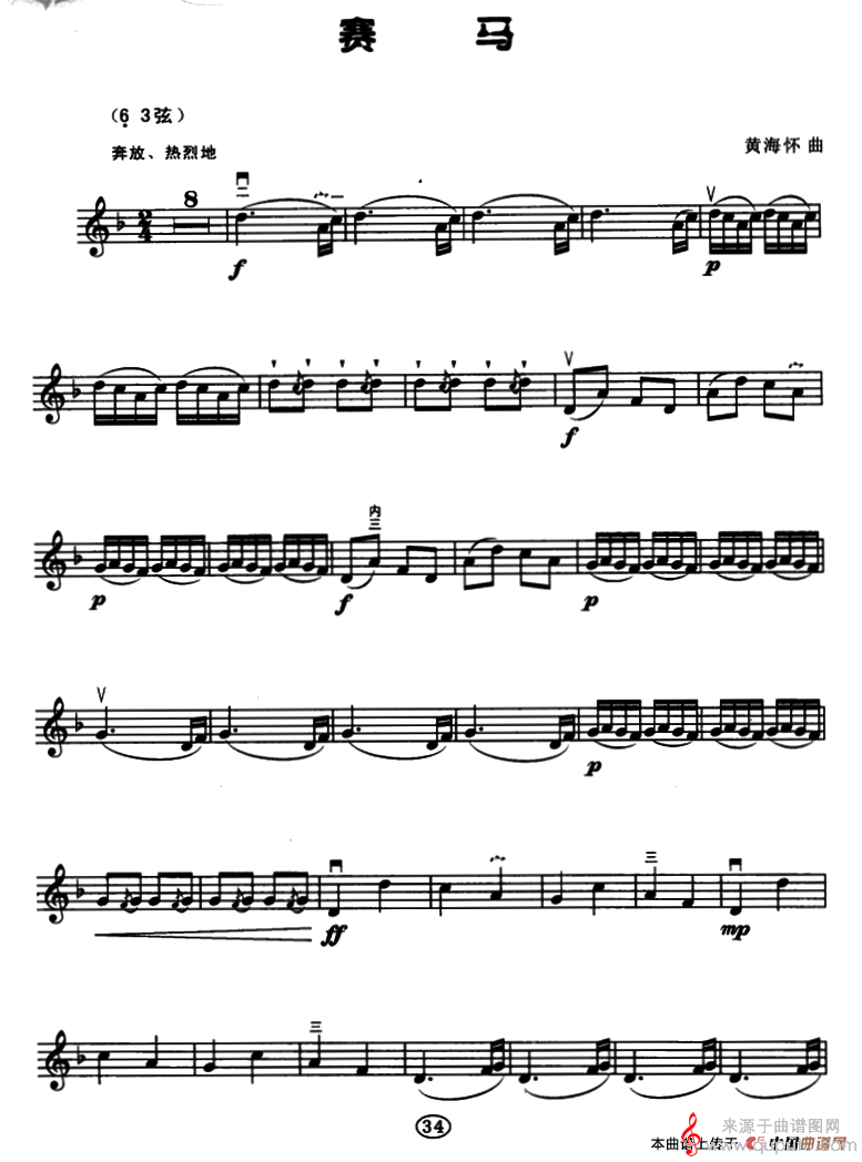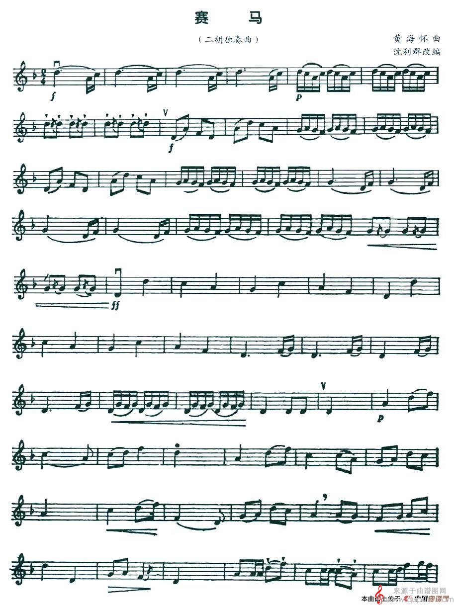 曲谱图网为您提供赛马(黄海怀曲、五线谱沈利群改编二胡独奏曲)找谱子,就上曲谱图网。