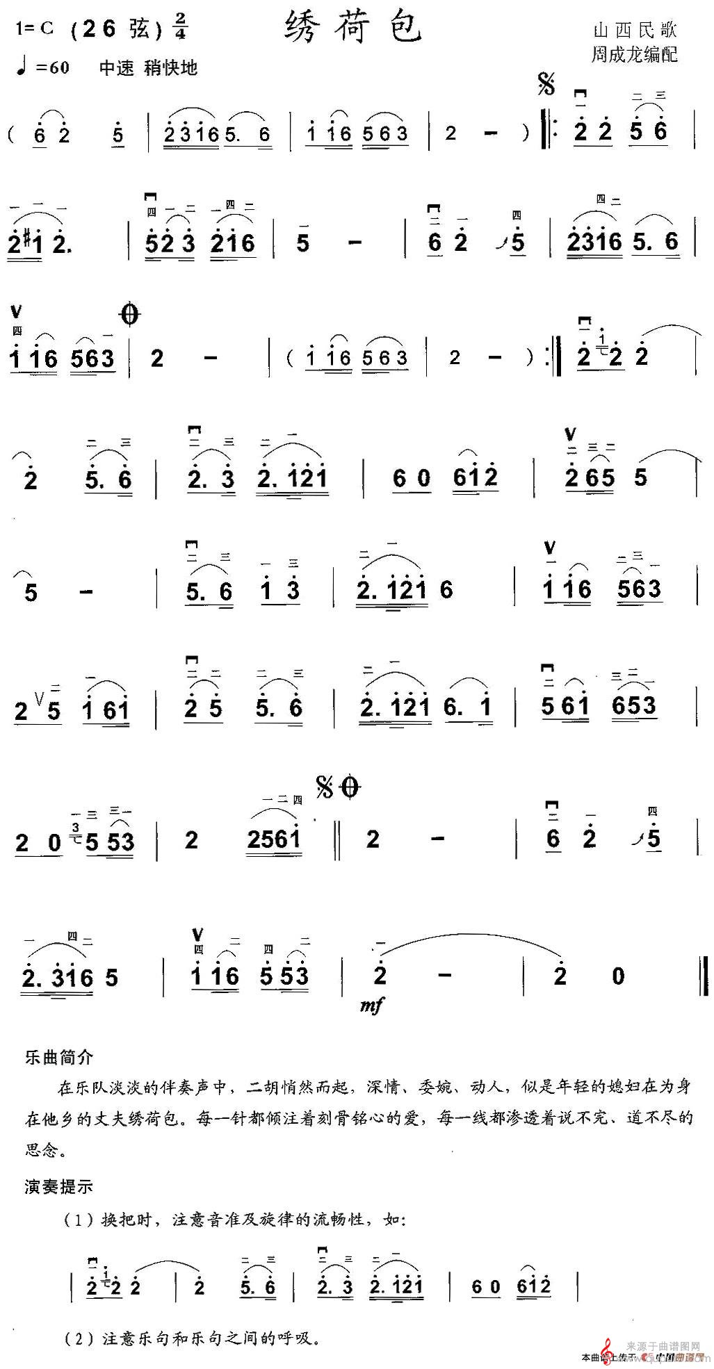 曲谱图网为您提供绣荷包(周成龙编配版山西民歌绣荷包简谱)找谱子,就上曲谱图网。
