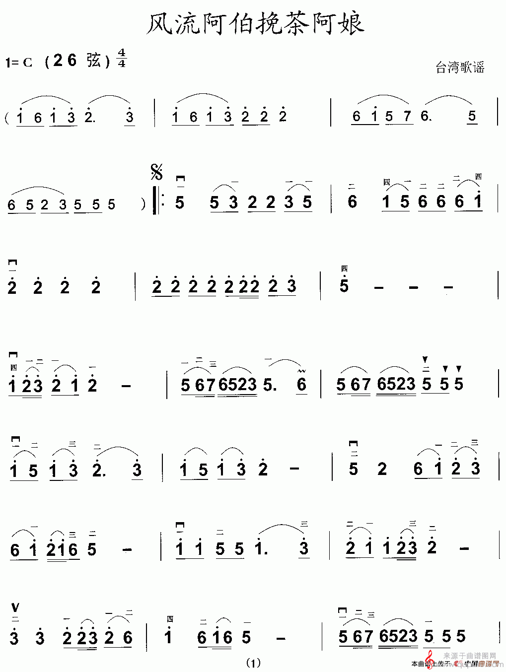 曲谱图网为您提供风流阿伯挽茶阿娘(台湾歌谣风流阿伯挽茶阿娘简谱)找谱子,就上曲谱图网。