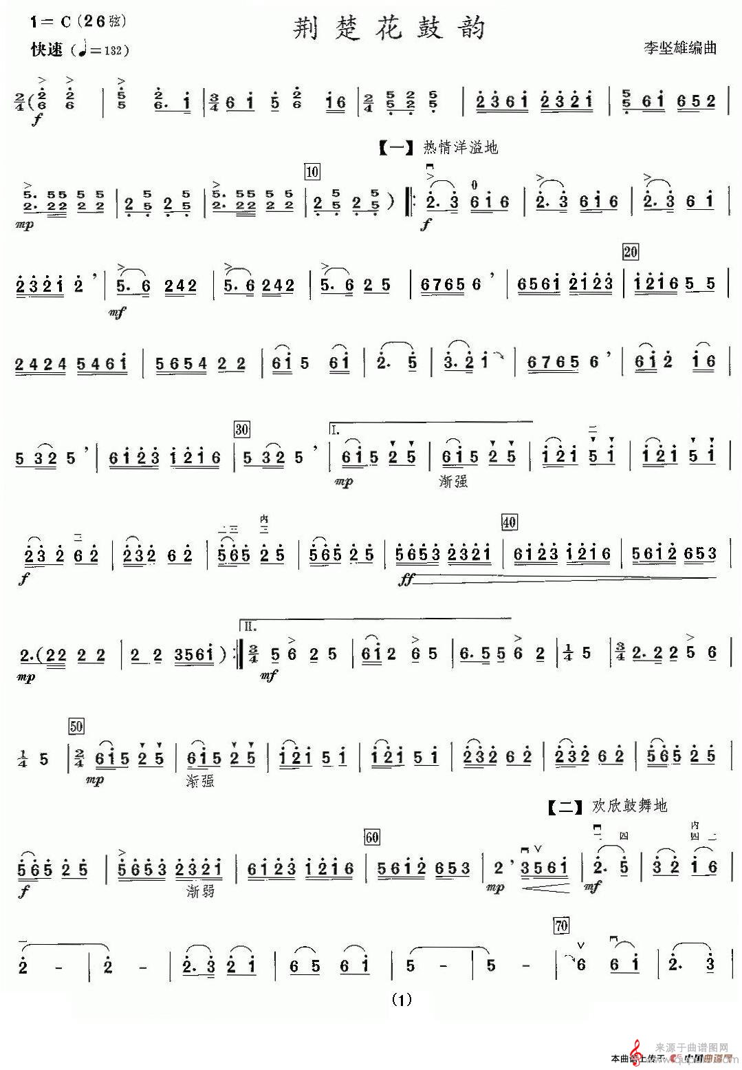 曲谱图网为您提供楚荆花鼓韵(楚荆花鼓韵原创胡琴谱曲谱)找谱子,就上曲谱图网。