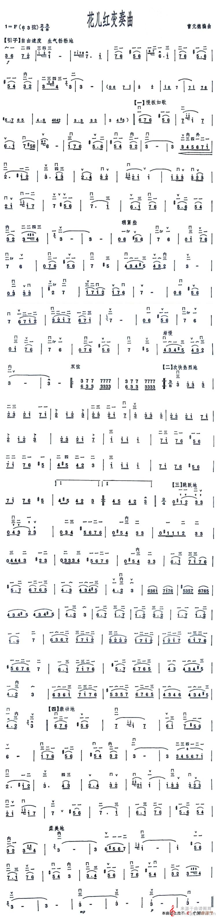 曲谱图网为您提供花儿红变奏曲(花儿红变奏曲简谱曲谱)找谱子,就上曲谱图网。
