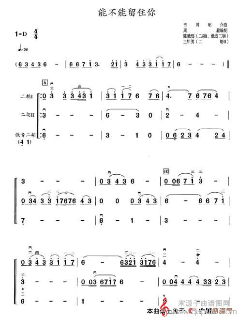 曲谱图网为您提供能不能留住你(三重奏原创胡琴谱简谱)找谱子,就上曲谱图网。