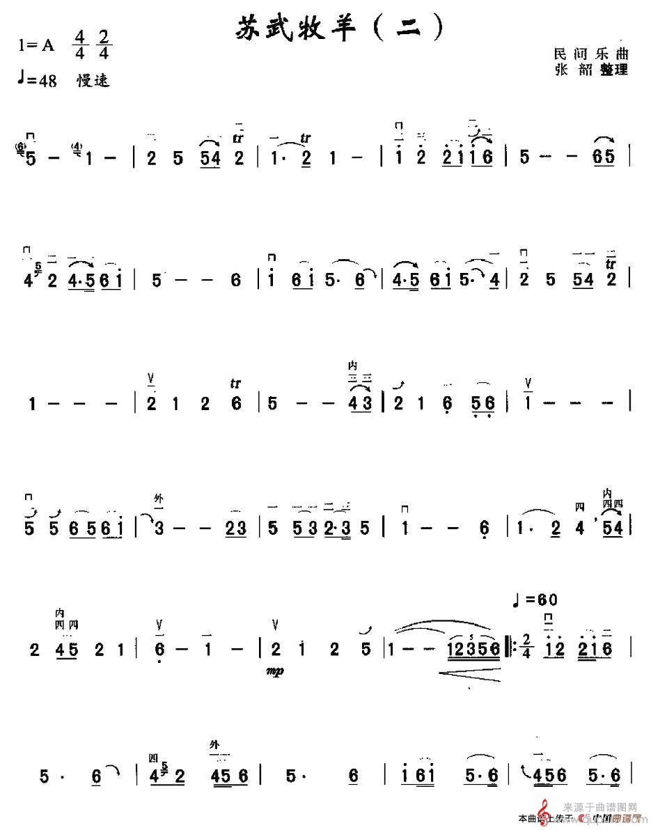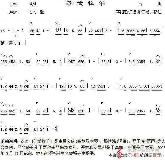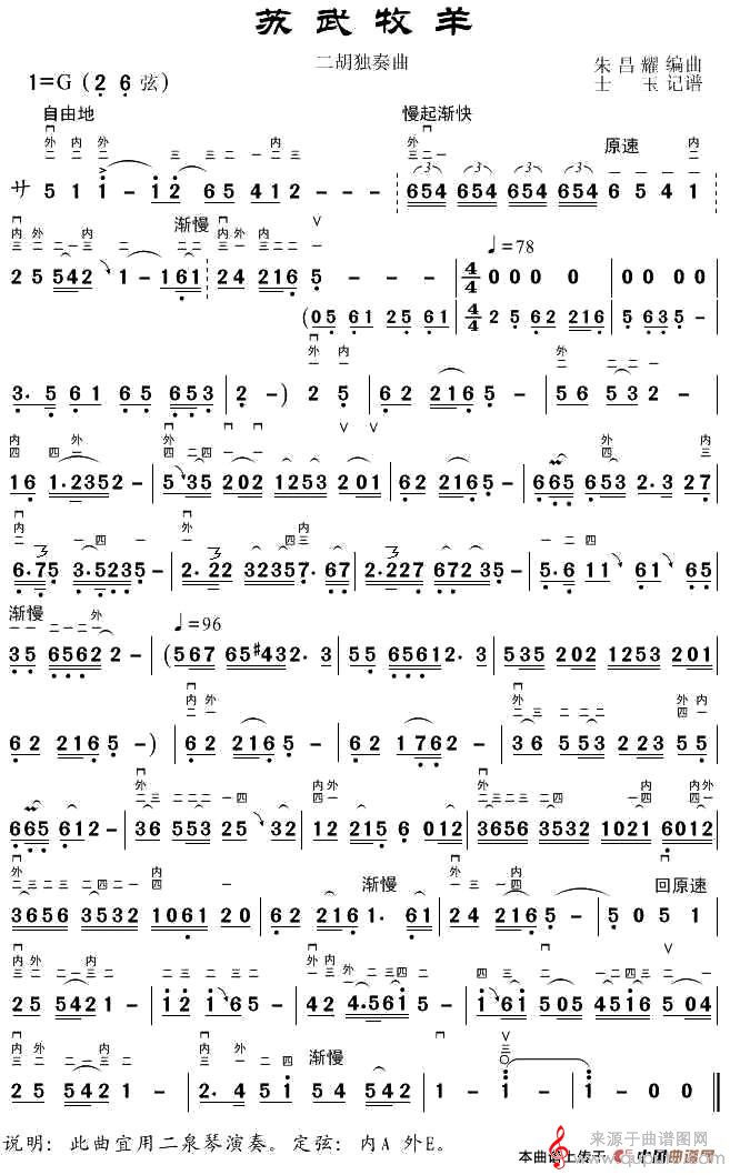 曲谱图网为您提供苏武牧羊(二胡独奏曲苏武牧羊简谱朱昌耀编曲)找谱子,就上曲谱图网。