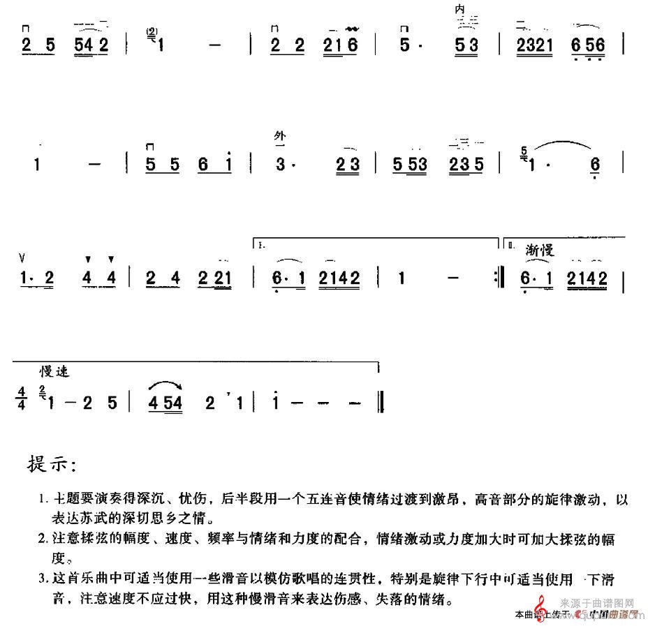 苏武牧羊(二胡独奏曲苏武牧羊简谱朱昌耀编曲)