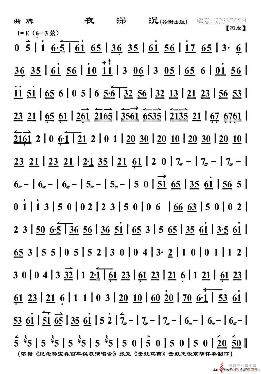 曲谱图网为您提供夜深沉(《祢衡击鼓》版、京胡曲曲谱)找谱子,就上曲谱图网。