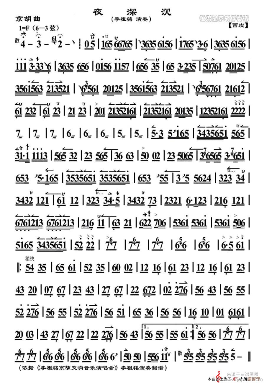 曲谱图网为您提供夜深沉(李祖铭演奏版、京胡曲胡琴谱)找谱子,就上曲谱图网。