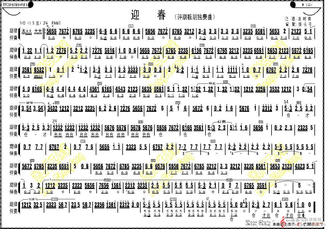 曲谱图网为您提供迎春(评剧板胡独奏曲简谱)找谱子,就上曲谱图网。