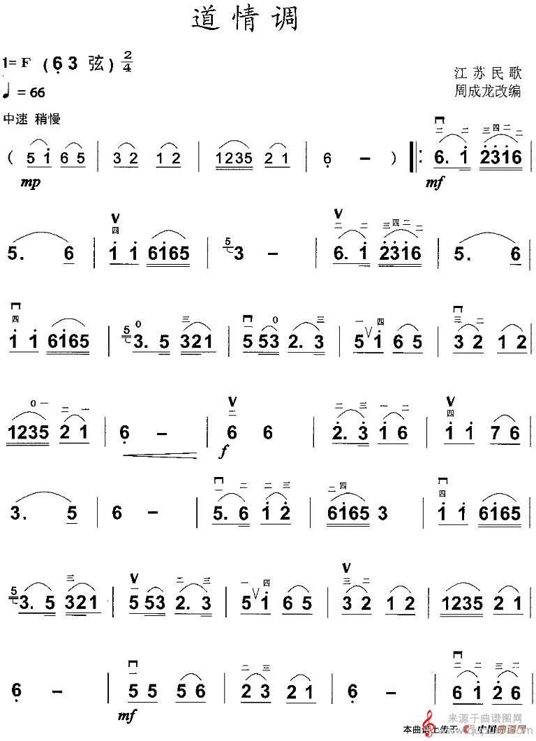 曲谱图网为您提供道情调(江苏民歌道情调周成龙改编曲谱)找谱子,就上曲谱图网。