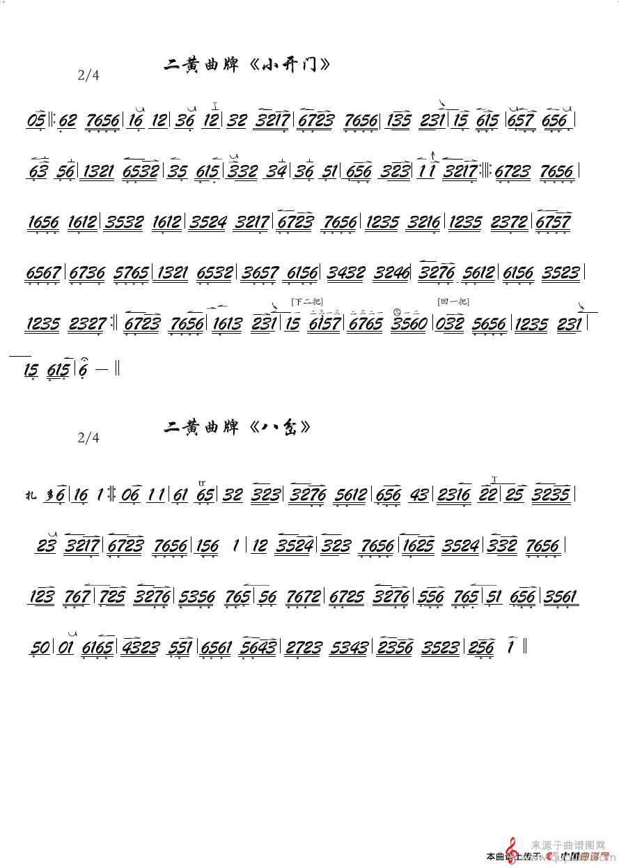 曲谱图网为您提供京剧二黄曲牌:小开门、八岔(京胡曲简谱曲谱)找谱子,就上曲谱图网。