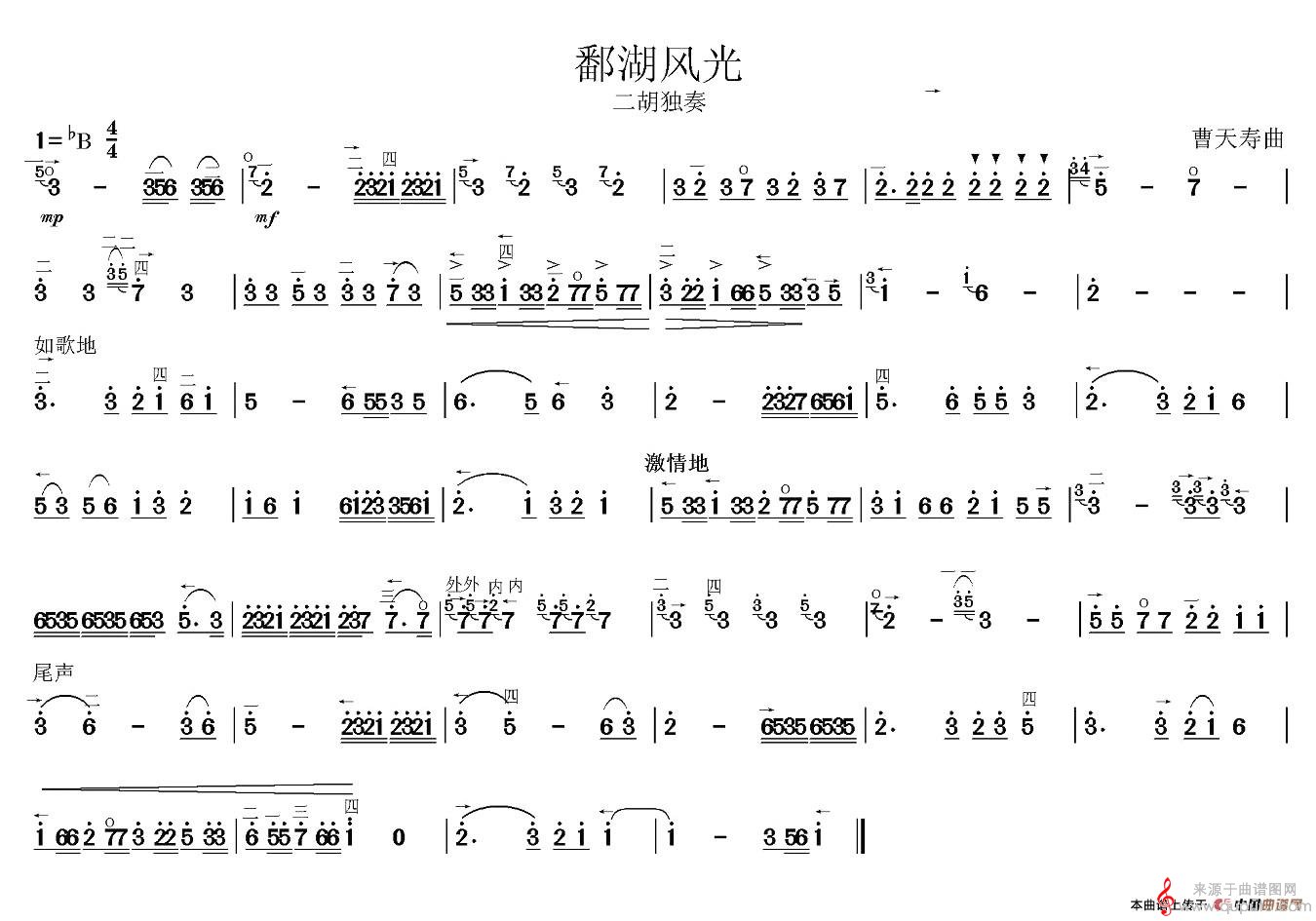曲谱图网为您提供鄱湖风光(二胡独奏简谱曲谱)找谱子,就上曲谱图网。