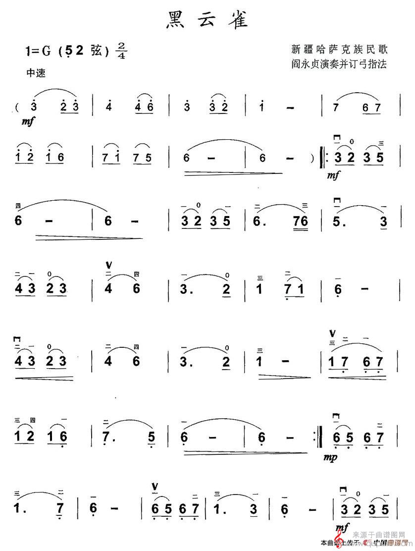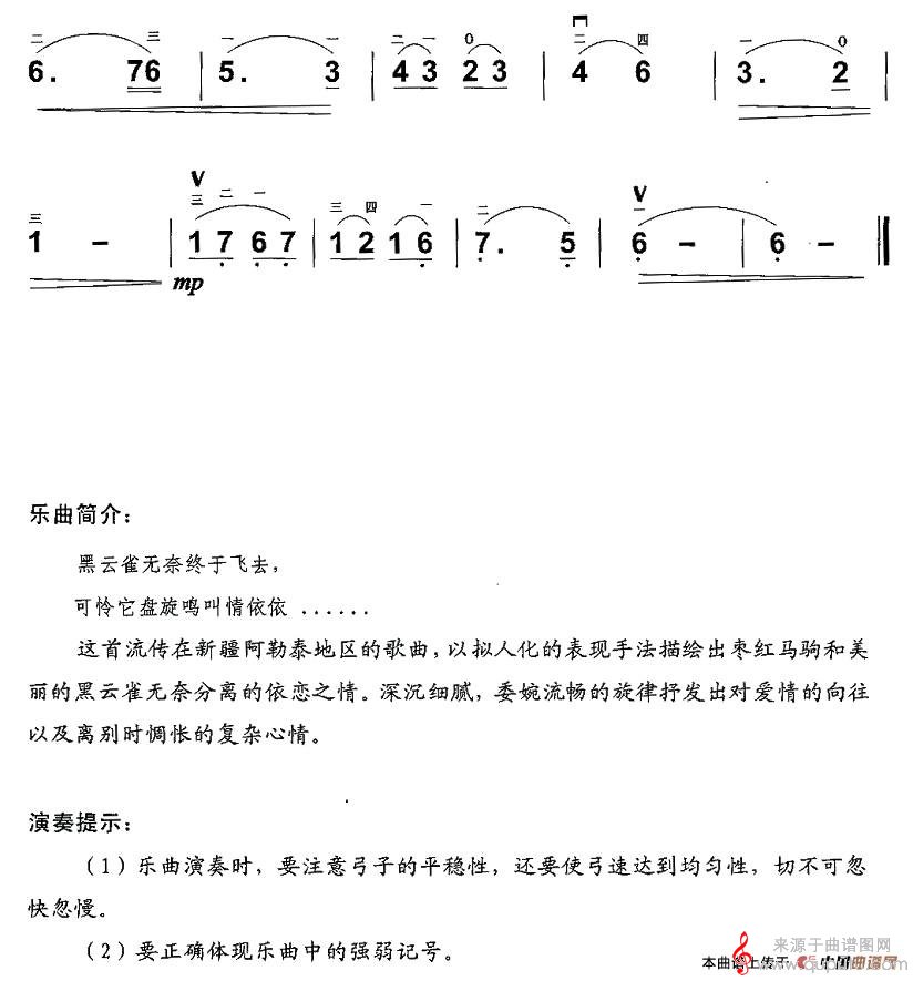曲谱图网为您提供黑云雀(新疆哈萨克族民歌黑云雀曲谱)找谱子,就上曲谱图网。