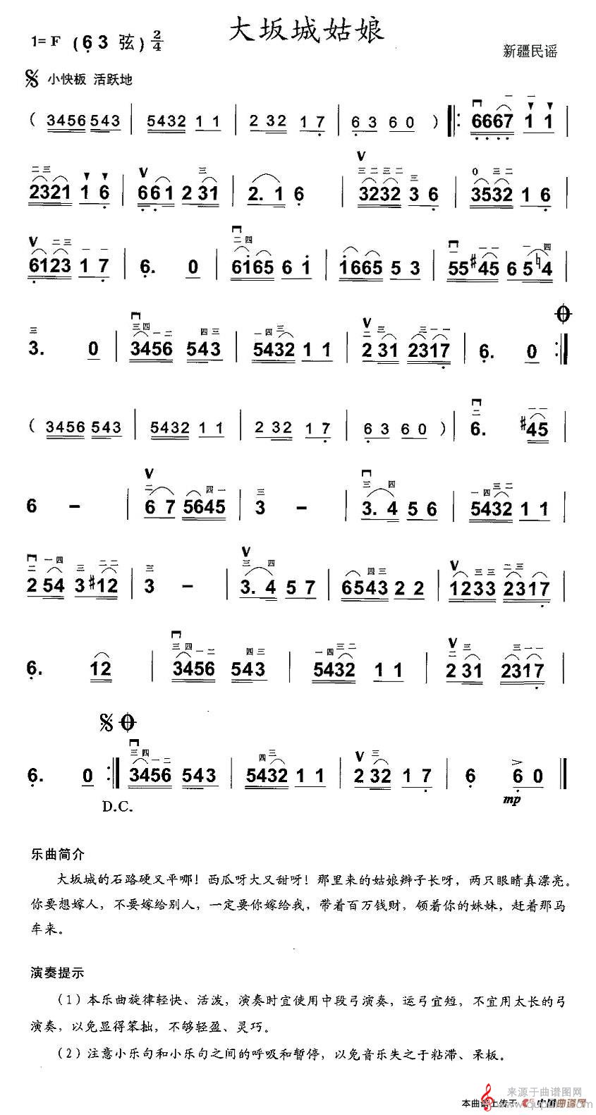 曲谱图网为您提供大坂城的姑娘(新疆民谣大坂城的姑娘曲谱)找谱子,就上曲谱图网。