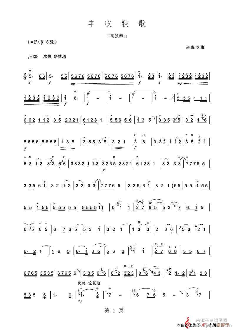 曲谱图网为您提供丰收秧歌(二胡独奏曲简谱)找谱子,就上曲谱图网。