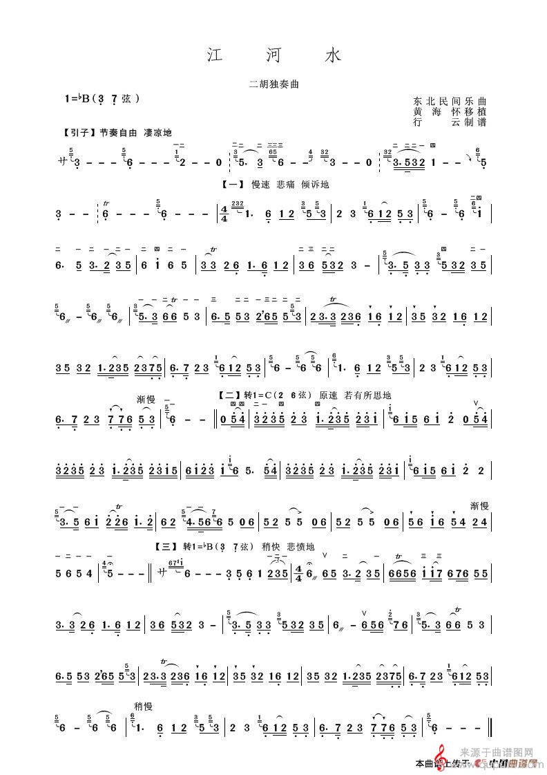 曲谱图网为您提供江河水(二胡独奏曲东北民间乐曲江河水简谱)找谱子,就上曲谱图网。