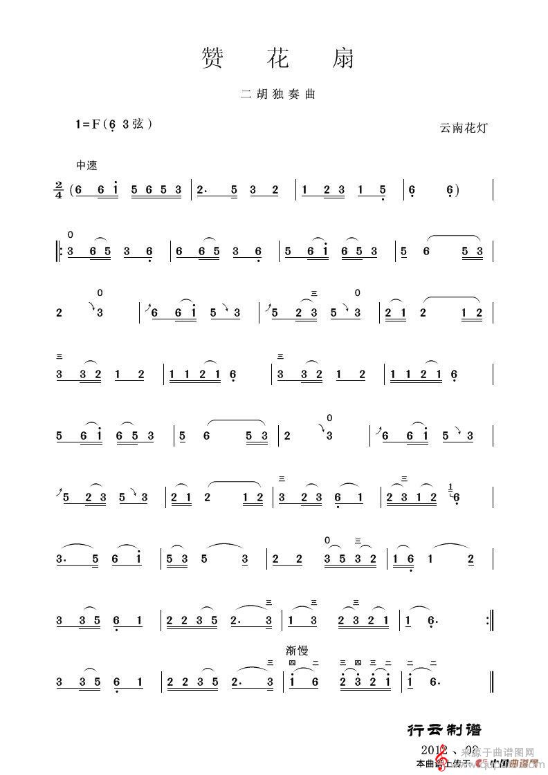 曲谱图网为您提供赞花扇(二胡独奏曲赞花扇简谱)找谱子,就上曲谱图网。