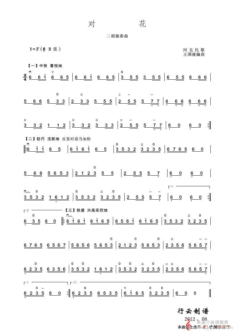 曲谱图网为您提供对花(陕北民歌对花二胡独奏曲歌曲教学)找谱子,就上曲谱图网。