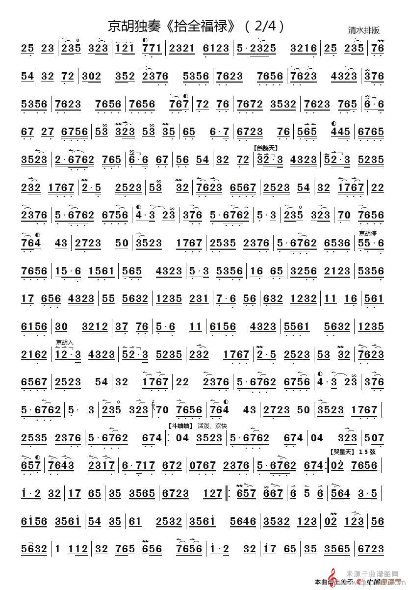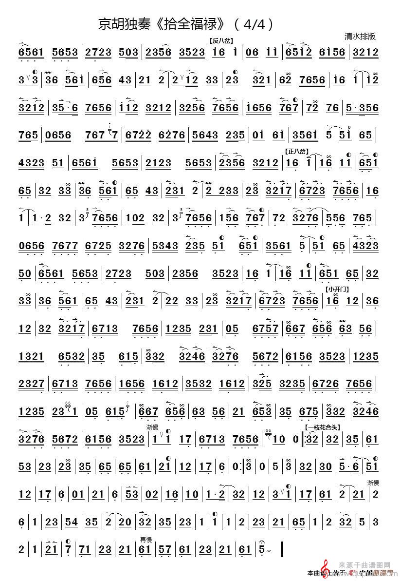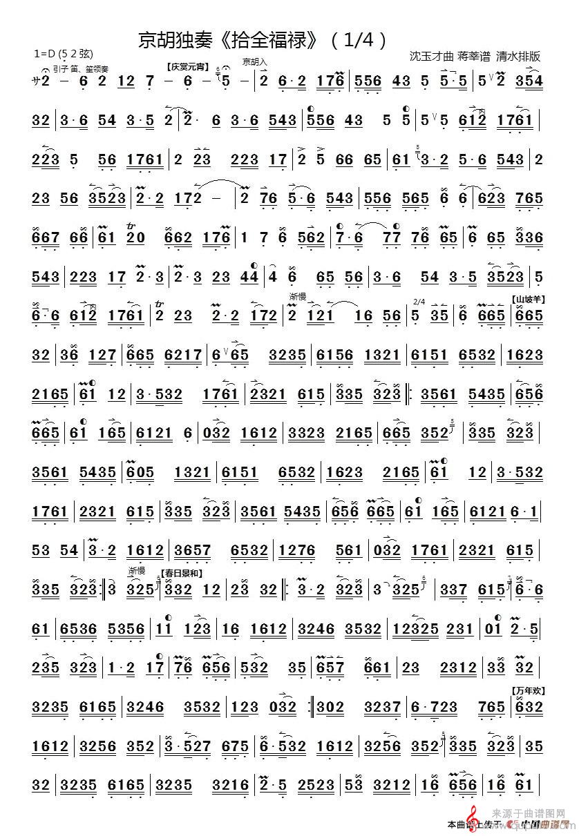 曲谱图网为您提供十全福禄(京胡独奏沈玉才作曲简谱)找谱子,就上曲谱图网。