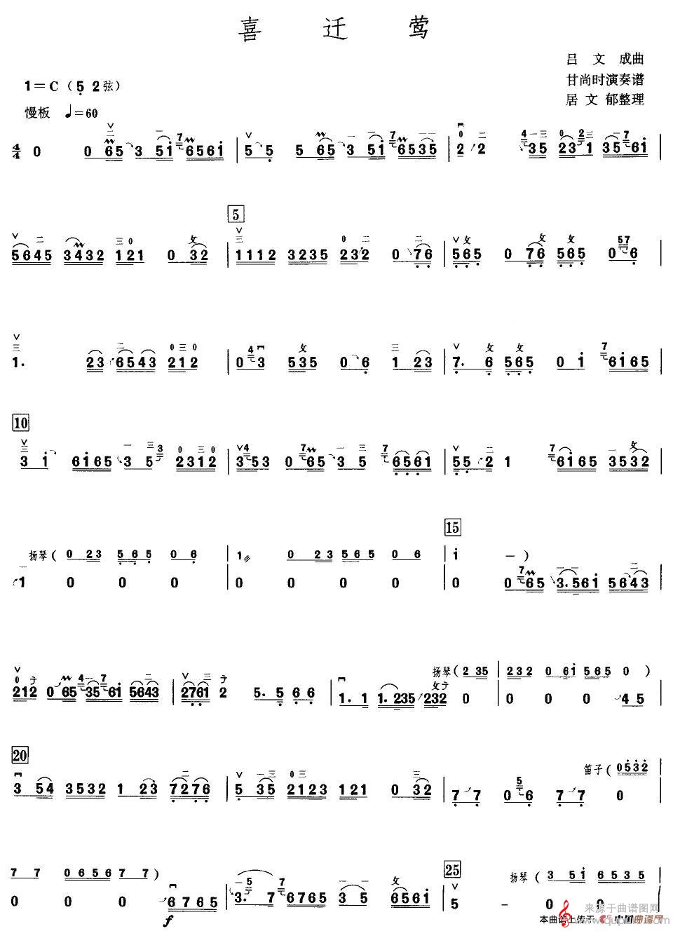 曲谱图网为您提供喜迁莺(高胡谱吕成文作曲版歌词简谱)找谱子,就上曲谱图网。