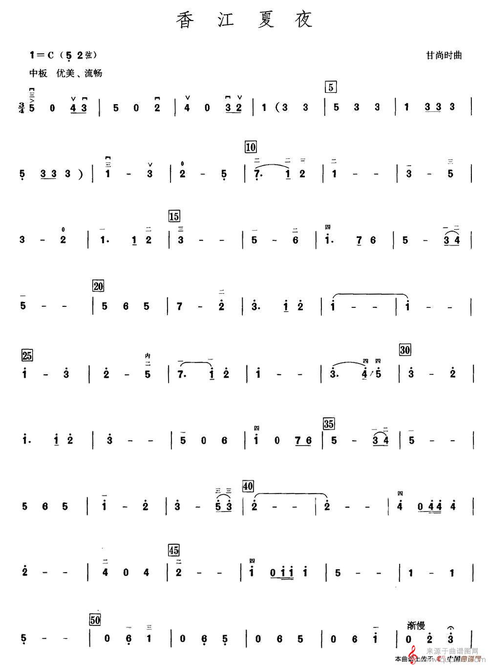 曲谱图网为您提供香江夏夜(高胡简谱曲谱)找谱子,就上曲谱图网。