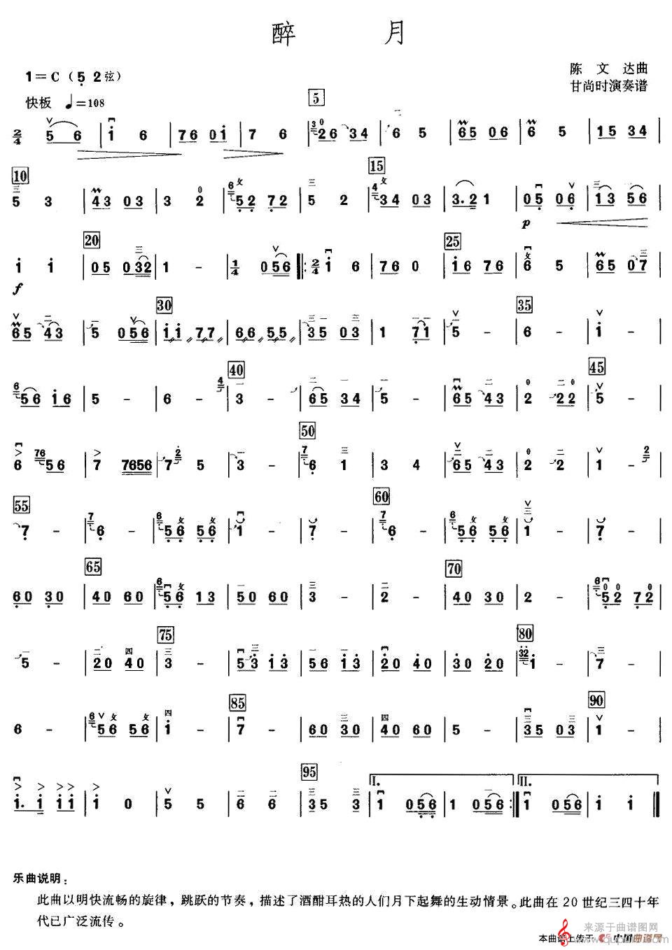 曲谱图网为您提供醉月(高胡陈文达作曲简谱教学)找谱子,就上曲谱图网。