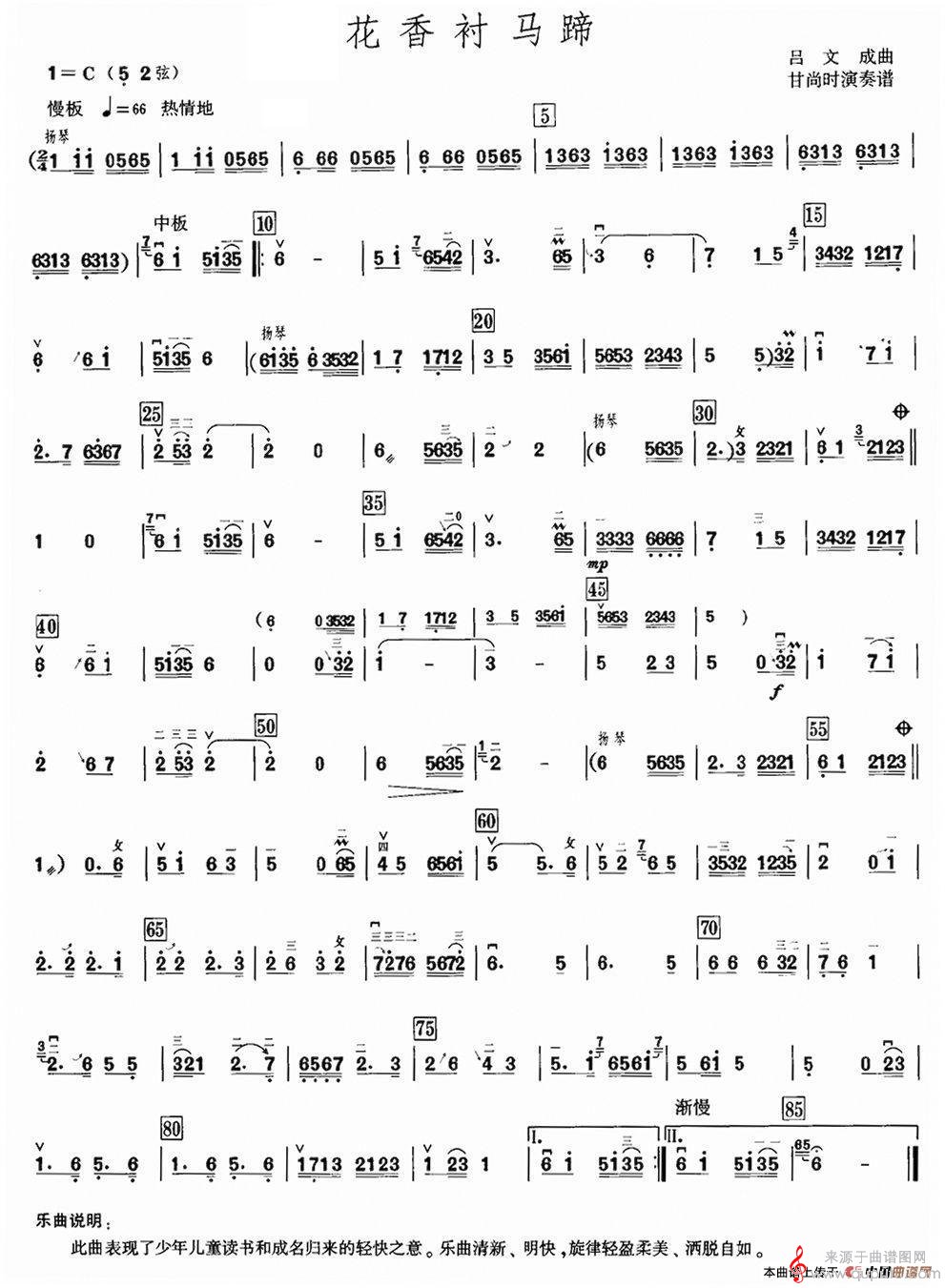 曲谱图网为您提供花香衬马蹄(高胡曲歌曲曲谱)找谱子,就上曲谱图网。