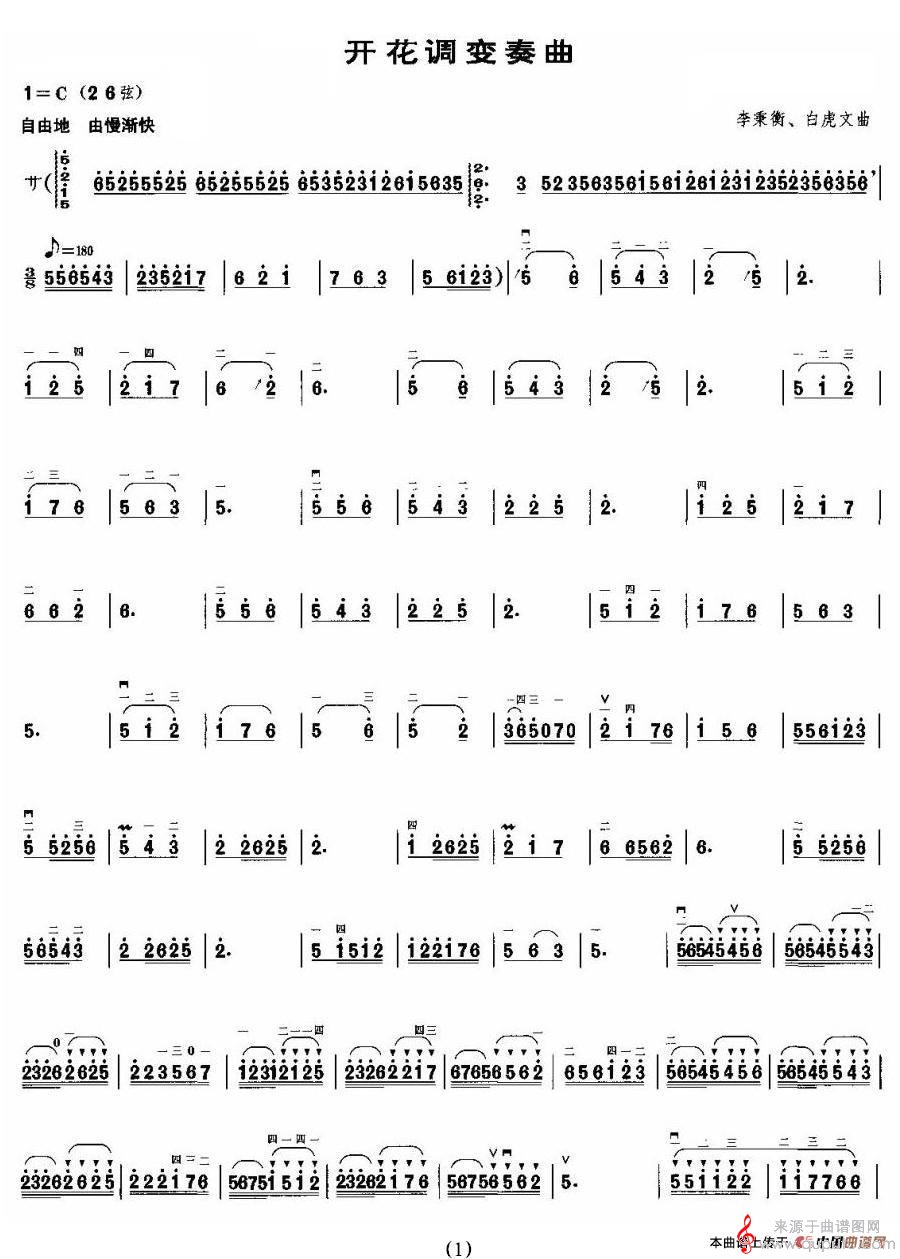 曲谱图网为您提供开花调变奏曲(开花调变奏曲胡琴谱简谱)找谱子,就上曲谱图网。