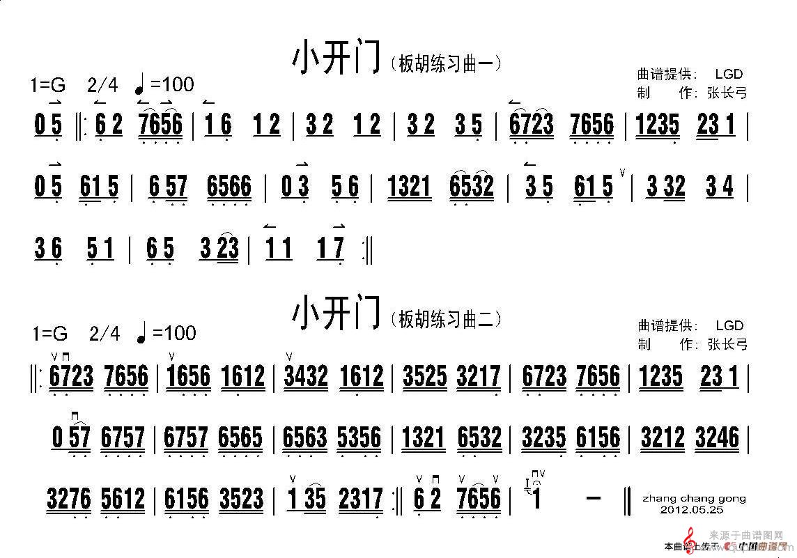 曲谱图网为您提供小开门(板胡练习曲二首张长弓制作版简谱)找谱子,就上曲谱图网。
