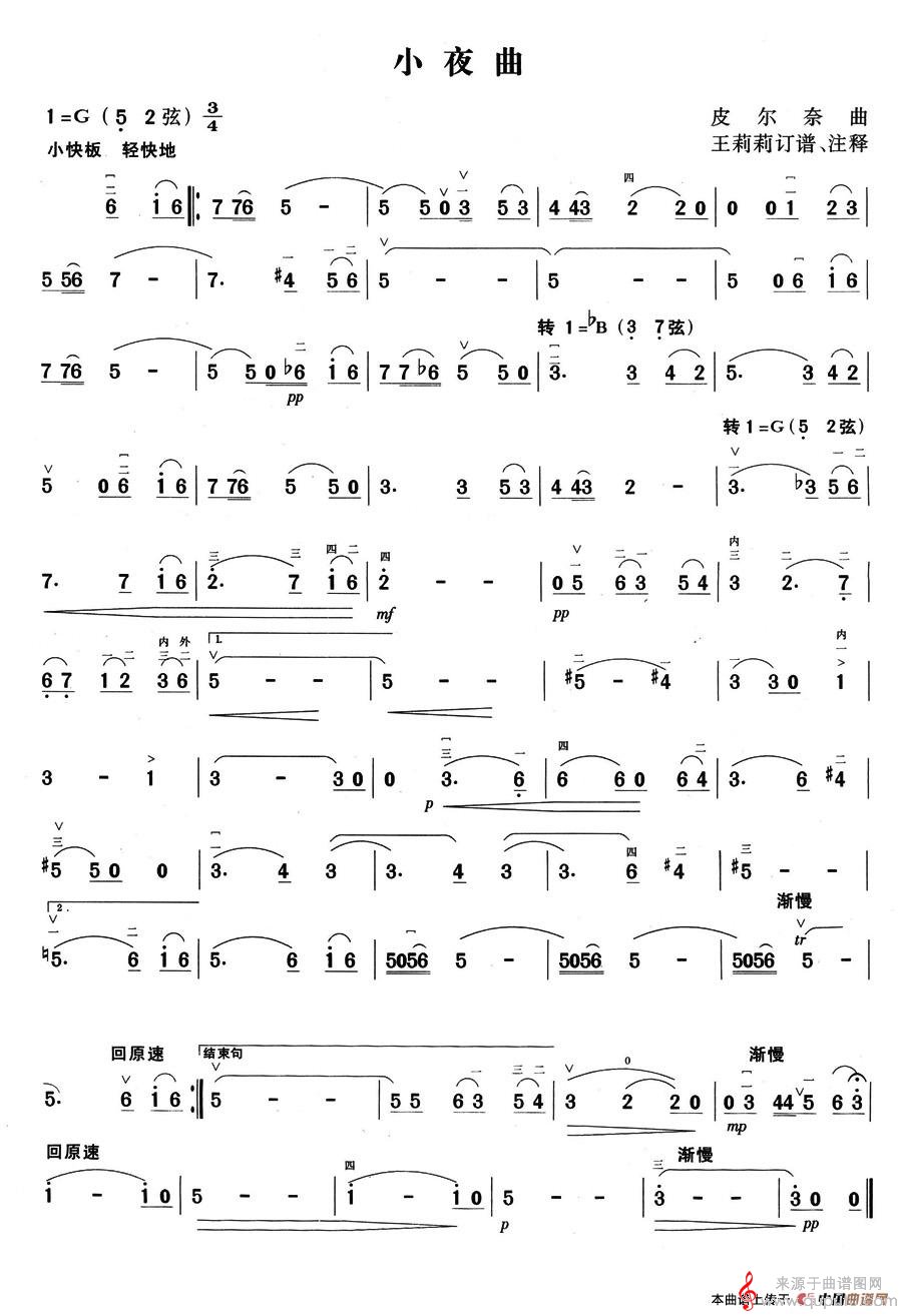 曲谱图网为您提供小夜曲(皮尔奈作曲版简谱)找谱子,就上曲谱图网。