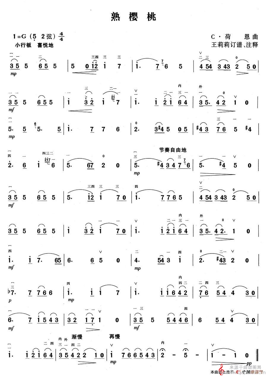 曲谱图网为您提供熟樱桃(熟樱桃简谱曲谱)找谱子,就上曲谱图网。