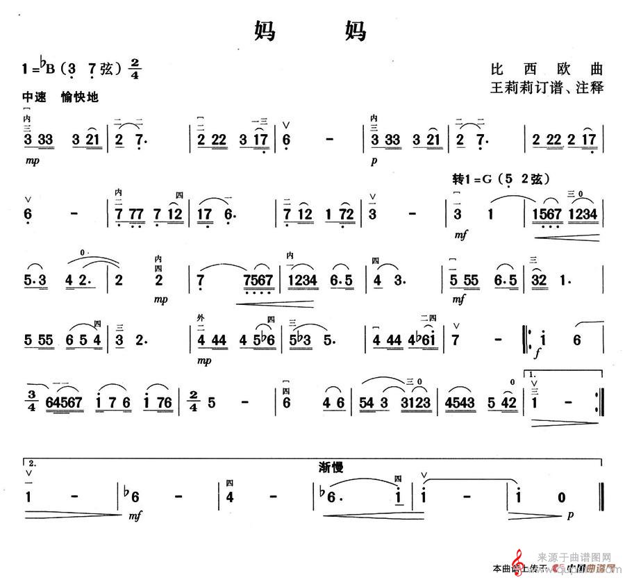 曲谱图网为您提供妈妈(妈妈原创胡琴谱简谱)找谱子,就上曲谱图网。