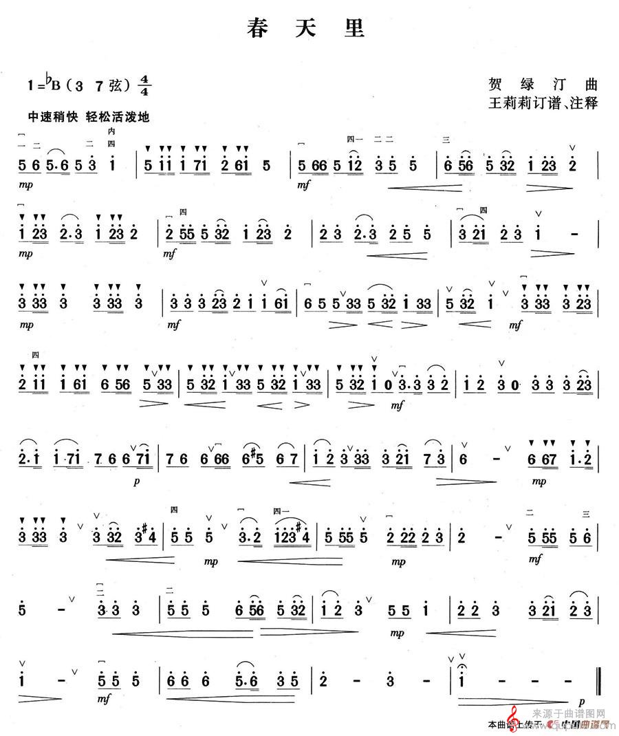 曲谱图网为您提供春天里(春天里胡琴谱曲谱)找谱子,就上曲谱图网。