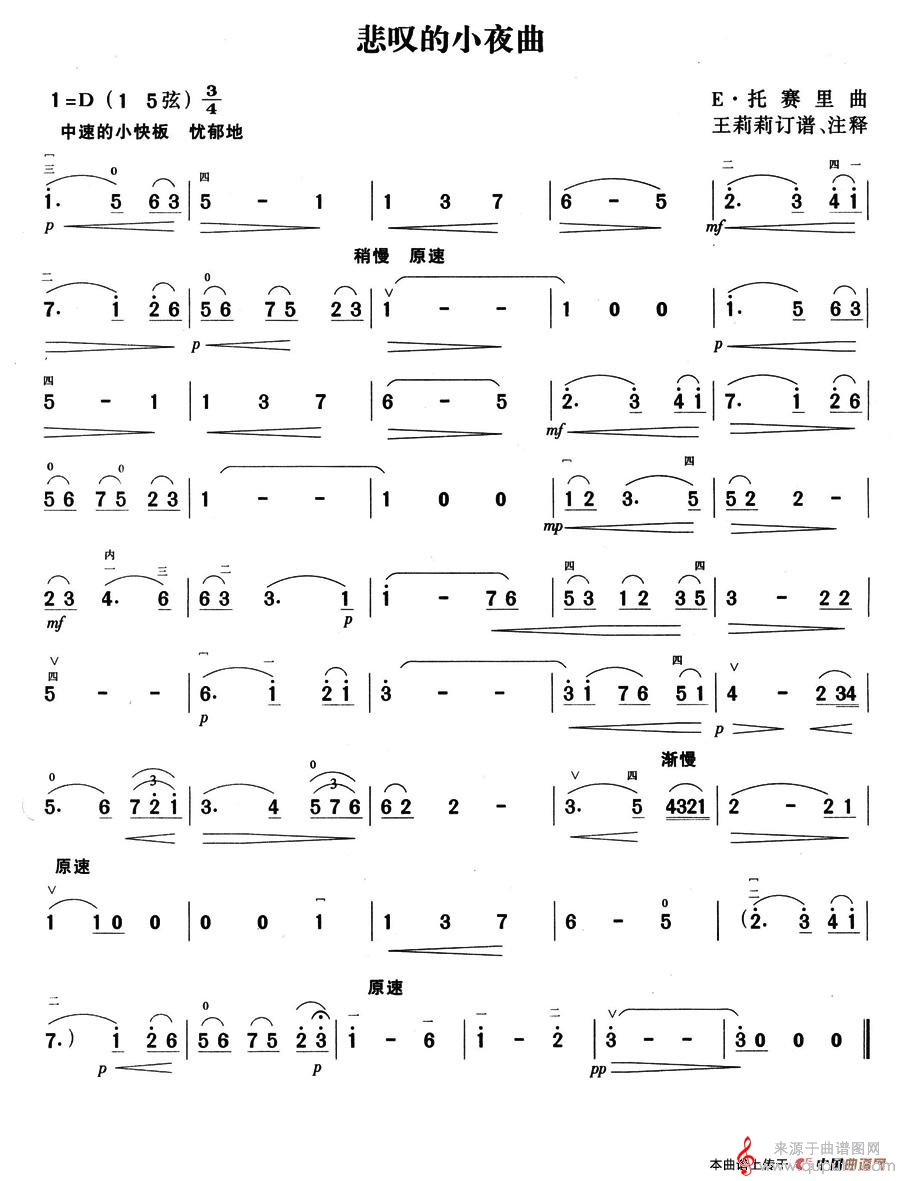 曲谱图网为您提供悲叹的小夜曲(悲叹的小夜曲原创胡琴谱)找谱子,就上曲谱图网。