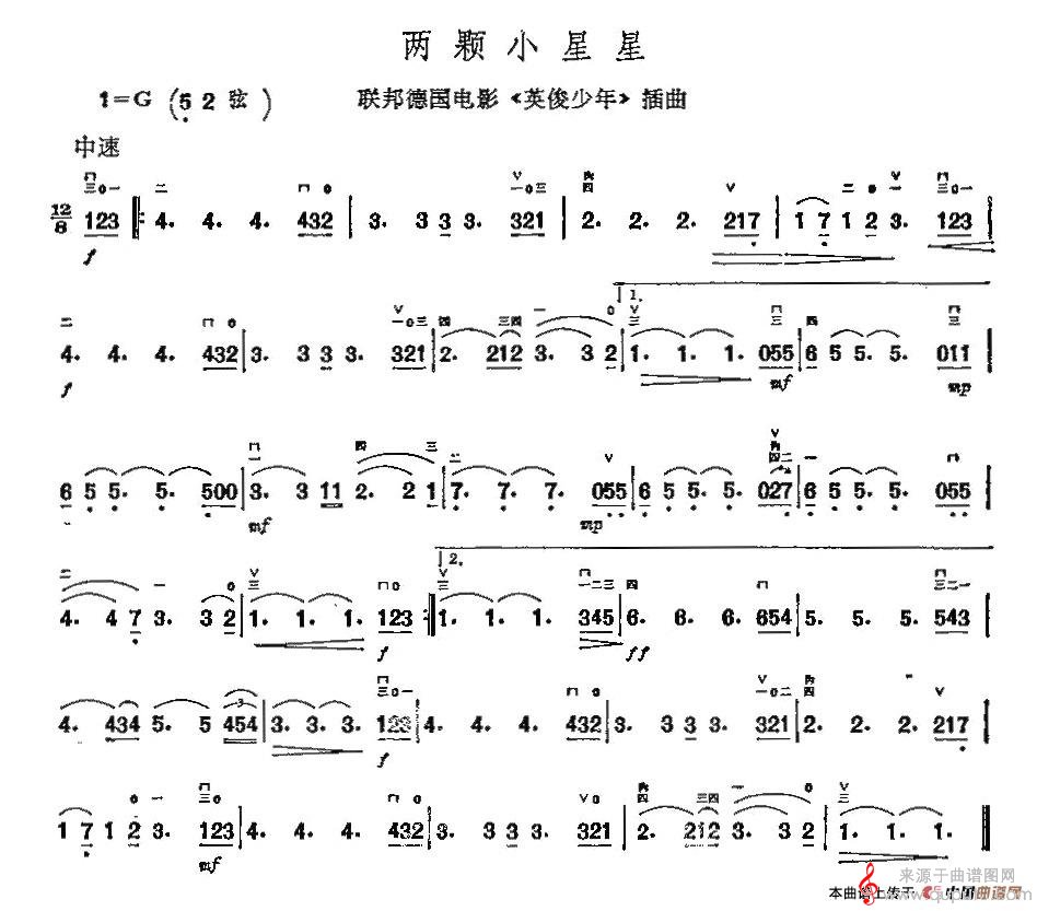 两颗小星星(两颗小星星联邦德国《英俊少年》插曲简谱)
