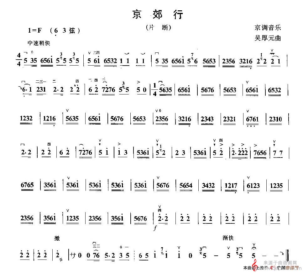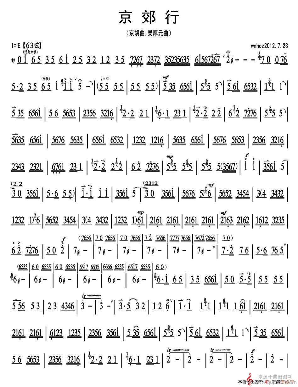曲谱图网为您提供京调音乐京郊行(京胡片段简谱)找谱子,就上曲谱图网。