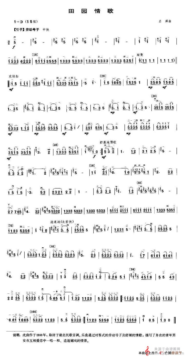 曲谱图网为您提供田园情歌(田园情歌简谱曲谱)找谱子,就上曲谱图网。