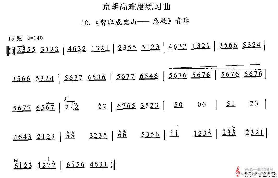 曲谱图网为您提供京胡高难度练习曲10、《智取威虎山——急救》(原创胡琴谱)找谱子,就上曲谱图网。