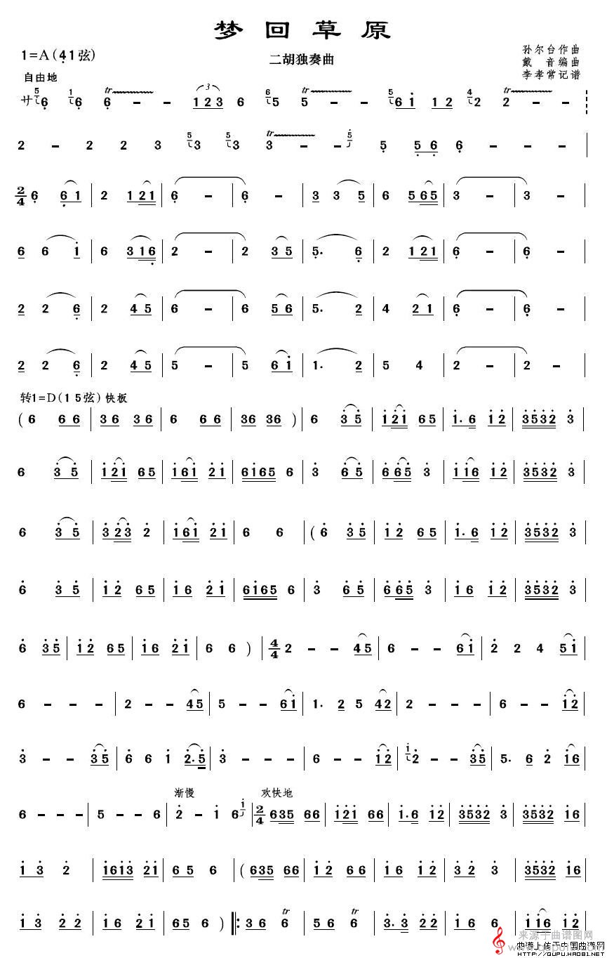 曲谱图网为您提供梦回草原(二胡独奏曲梦回草原简谱曲谱)找谱子,就上曲谱图网。