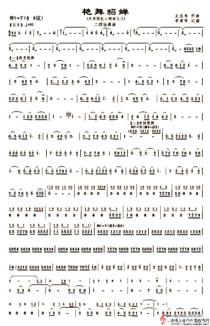 曲谱图网为您提供艳舞貂蝉(二胡协奏曲《天香国色》之三简谱)找谱子,就上曲谱图网。