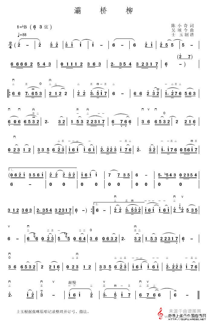 曲谱图网为您提供灞桥柳(灞桥柳歌词歌曲简谱)找谱子,就上曲谱图网。