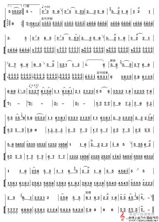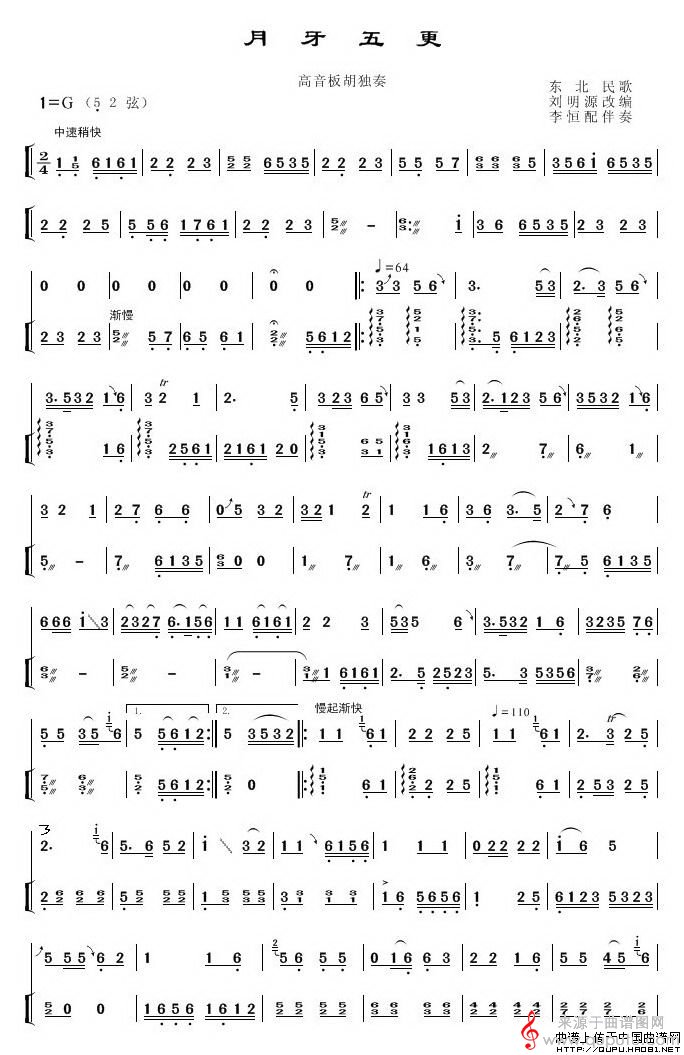 曲谱图网为您提供月牙五更(东北民歌月牙五更高音板胡独奏简谱)找谱子,就上曲谱图网。