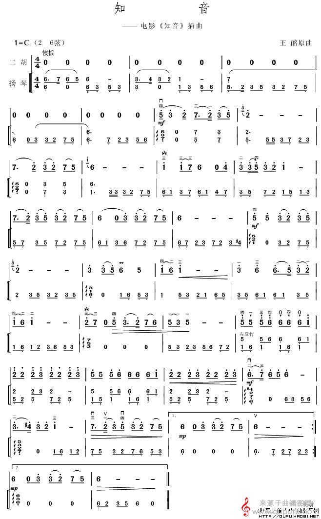 知音(同名电影插曲)(扬琴伴奏谱简谱)