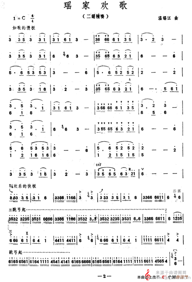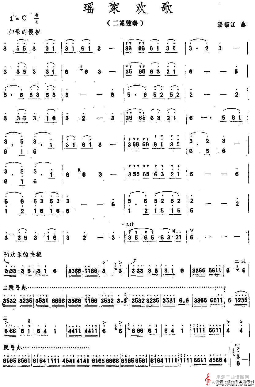 曲谱图网为您提供瑶家欢歌(二胡独奏曲瑶家欢歌简谱)找谱子,就上曲谱图网。