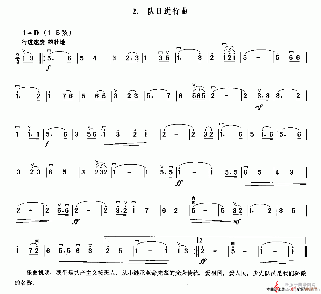 曲谱图网为您提供队日进行曲(队日进行曲简谱曲谱胡琴谱)找谱子,就上曲谱图网。