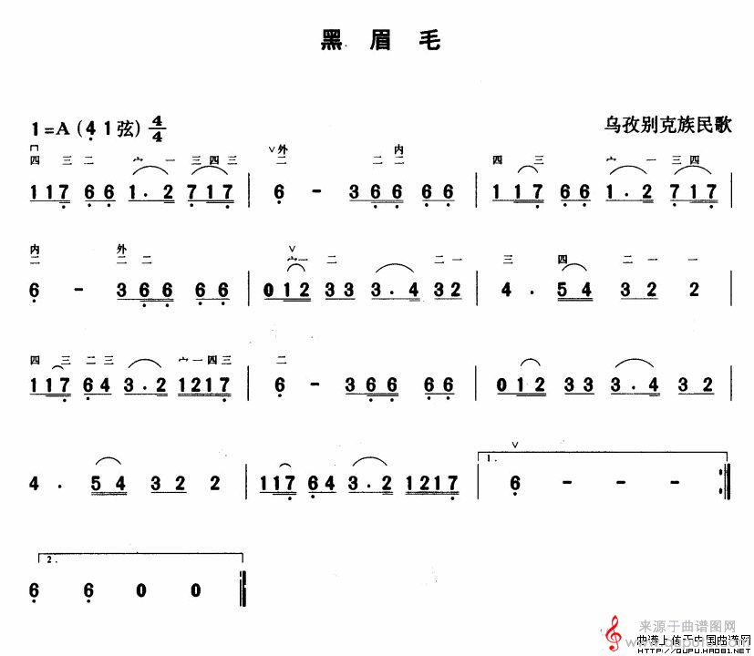 曲谱图网为您提供黑眉毛(乌孜别克族民歌黑眉毛简谱)找谱子,就上曲谱图网。