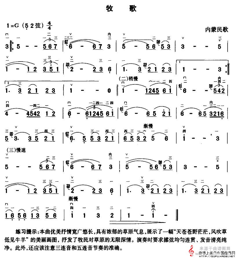 当前位置:曲谱图网器乐曲谱胡琴牧歌(内蒙民歌牧歌简谱曲谱)