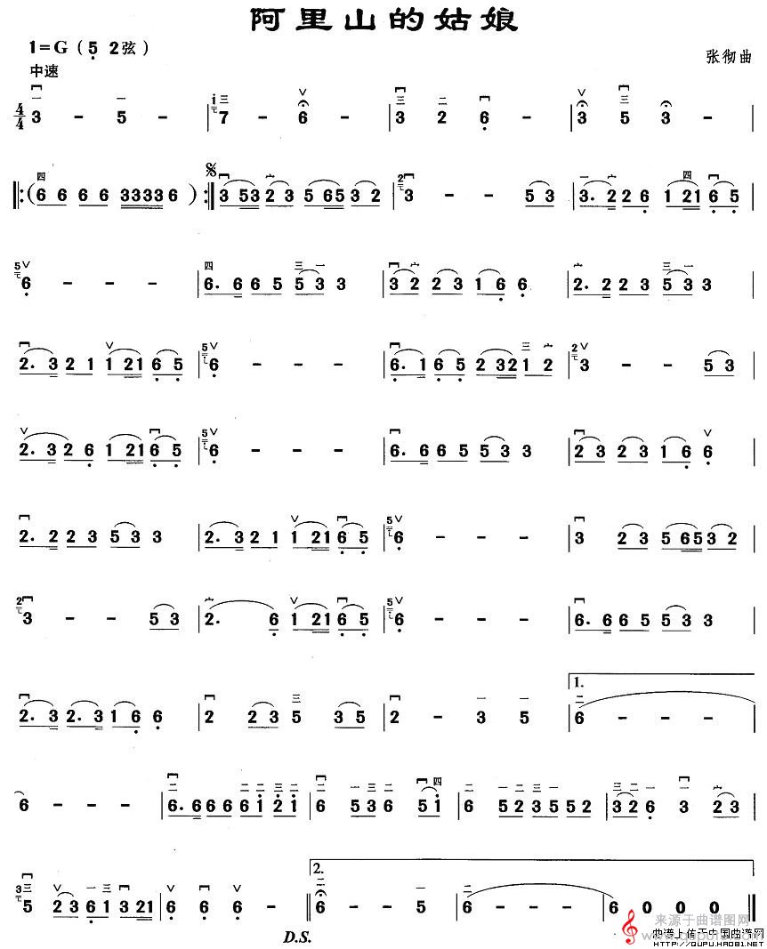 曲谱图网为您提供阿里山的姑娘(阿里山的姑娘简谱胡琴谱教学)找谱子,就上曲谱图网。